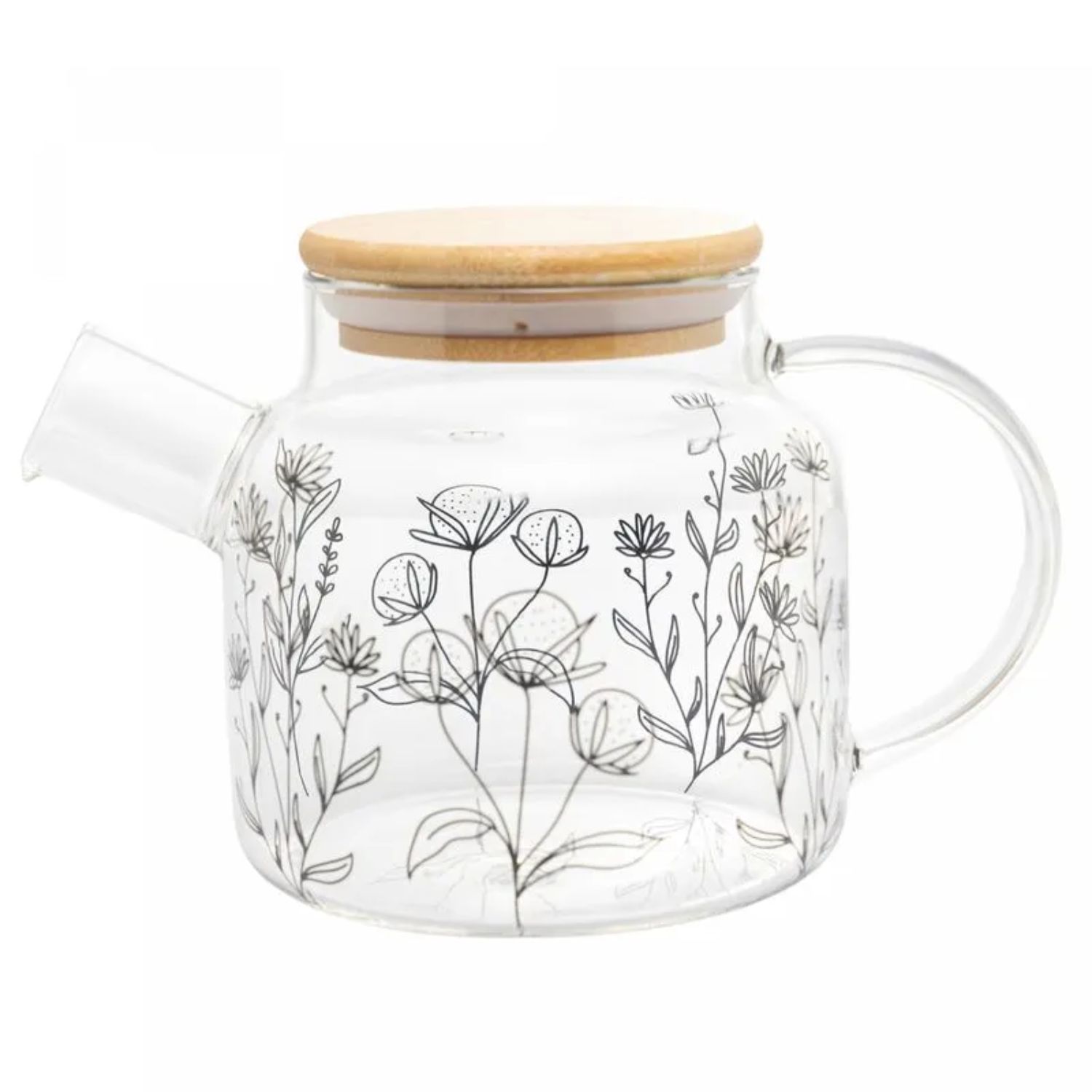 Chaleira Vidro Borossilicato c/Tampa Bambu Flor 600ml Wolff