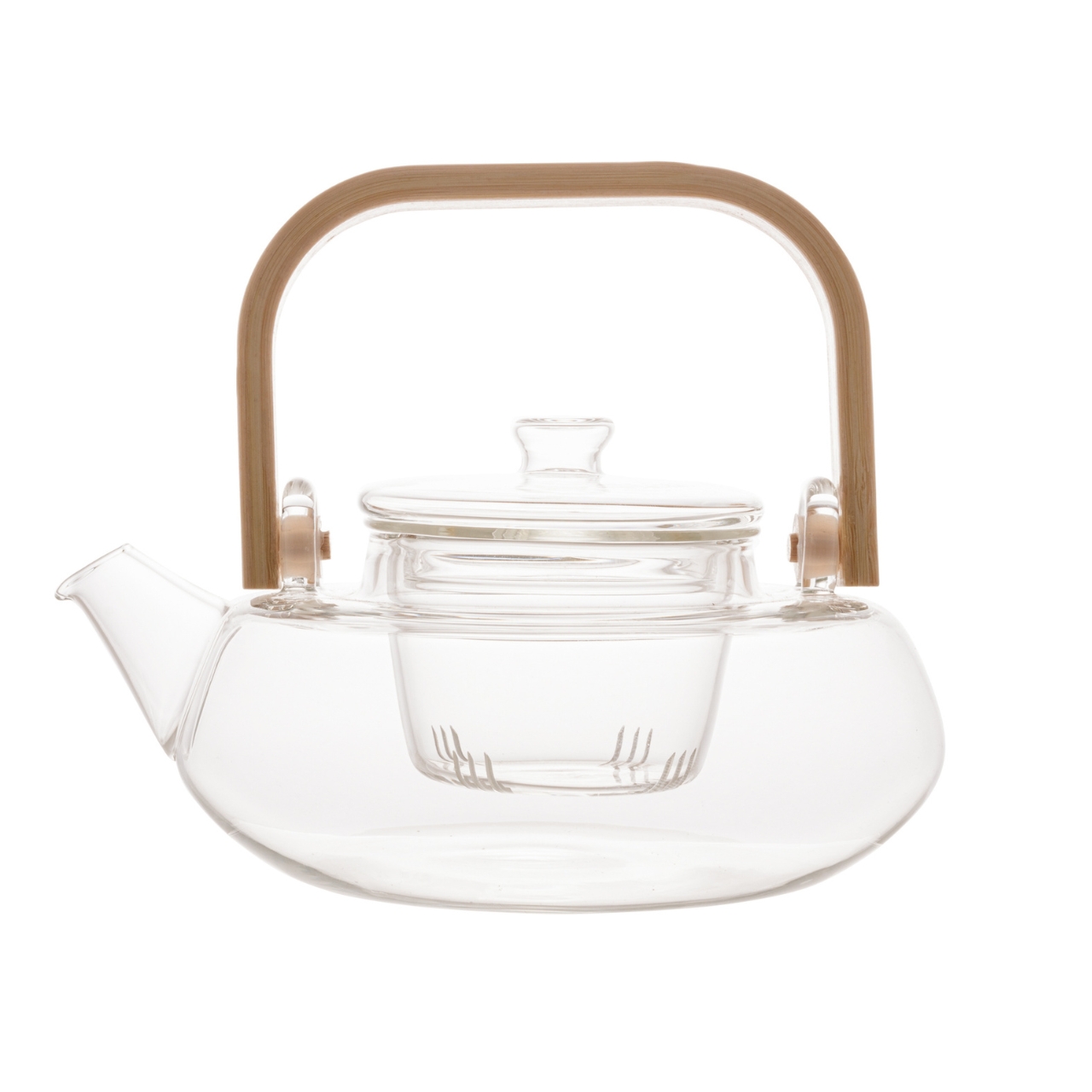 Chaleira de Vidro Borossilicato Resistente à Calor e com Alça em Bambu de 800ml