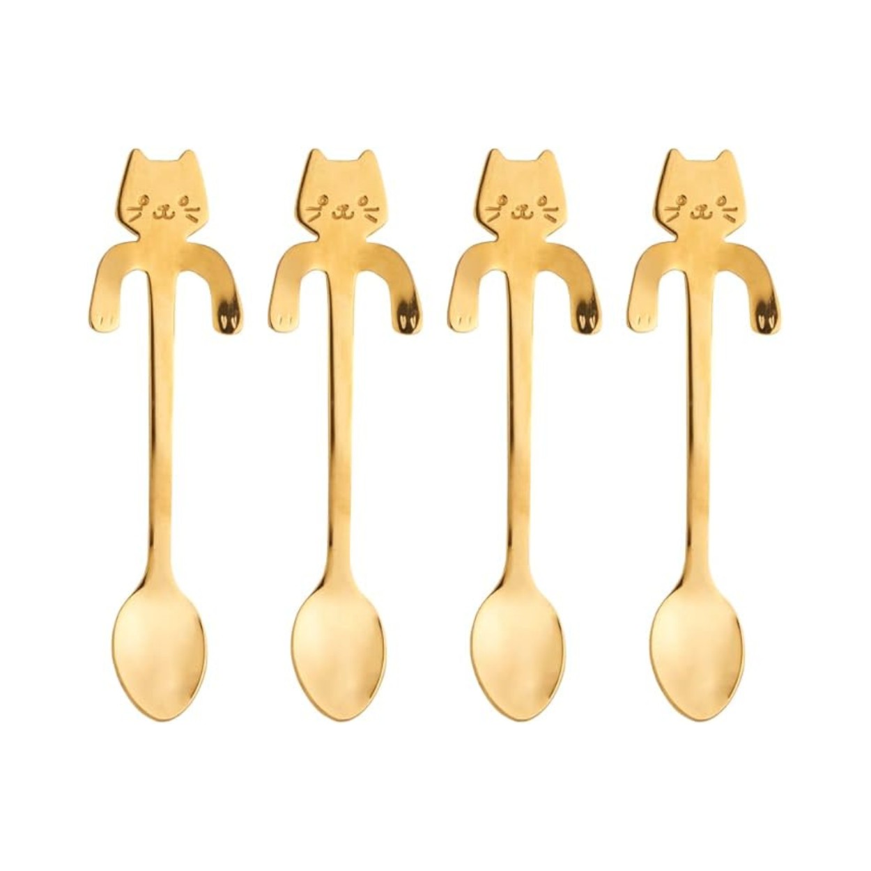 Descubra a elegância e sofisticação na hora do seu chá com o Conjunto de 4 Colheres de Chá Aço Inox Cat Dourado da Wolff!