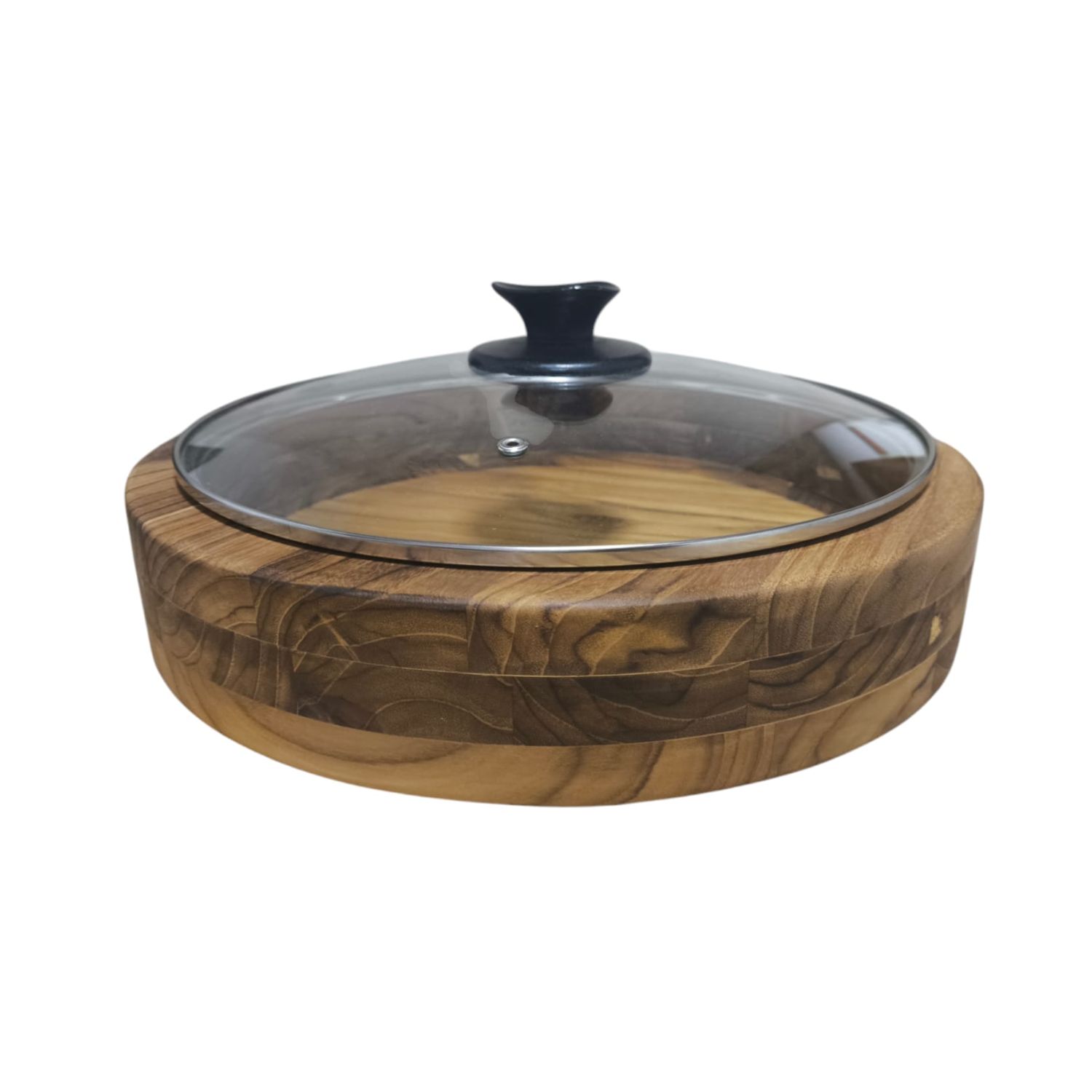Uma gamela redonda com tampa, perfeita para armazenar e servir todos os tipos de cortes: carne, frango, linguiças, petiscos, pães,