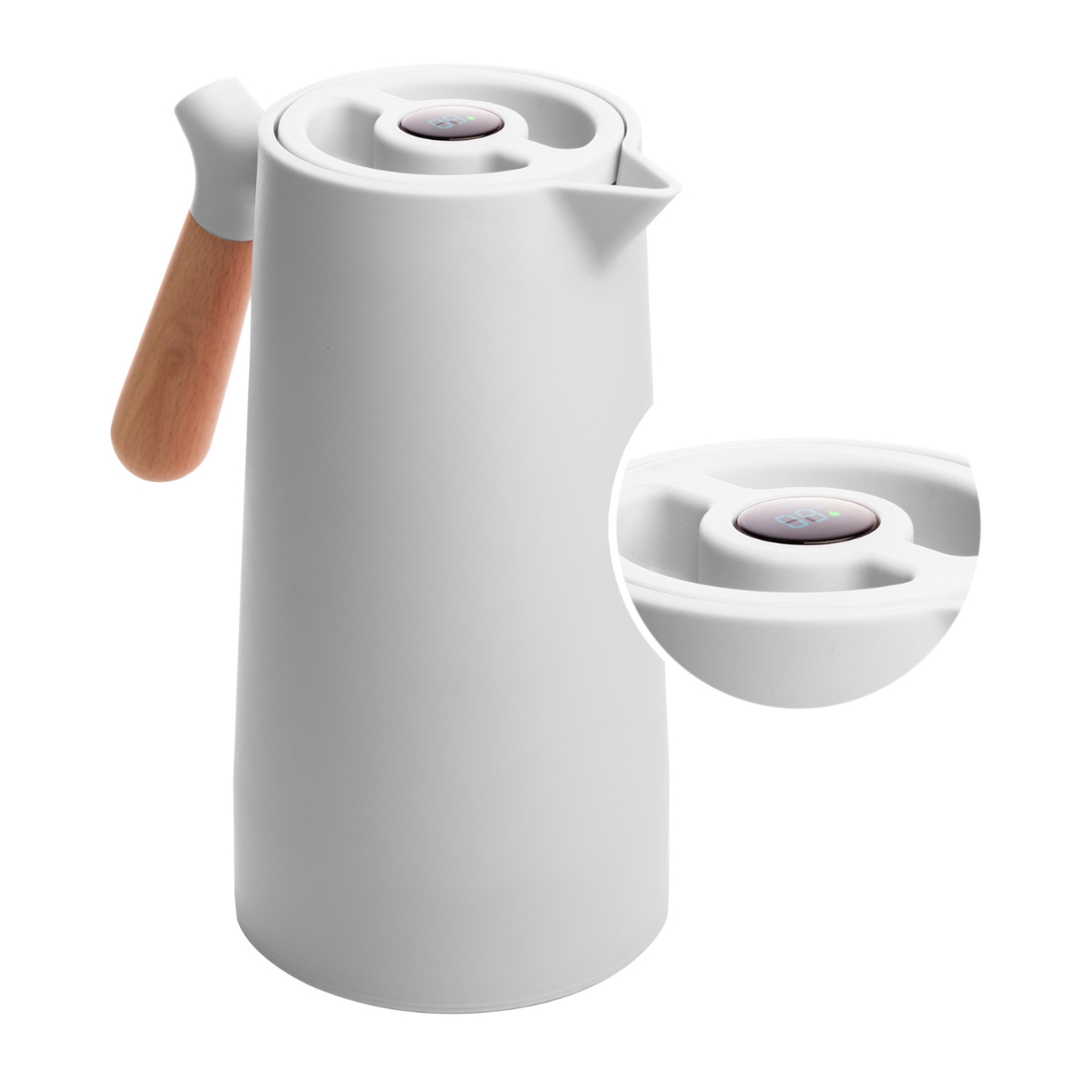 Esta garrafa térmica possui um design contemporâneo e sofisticado, combinando funcionalidade e estilo, e adiciona um toque de elegância à sua mesa.