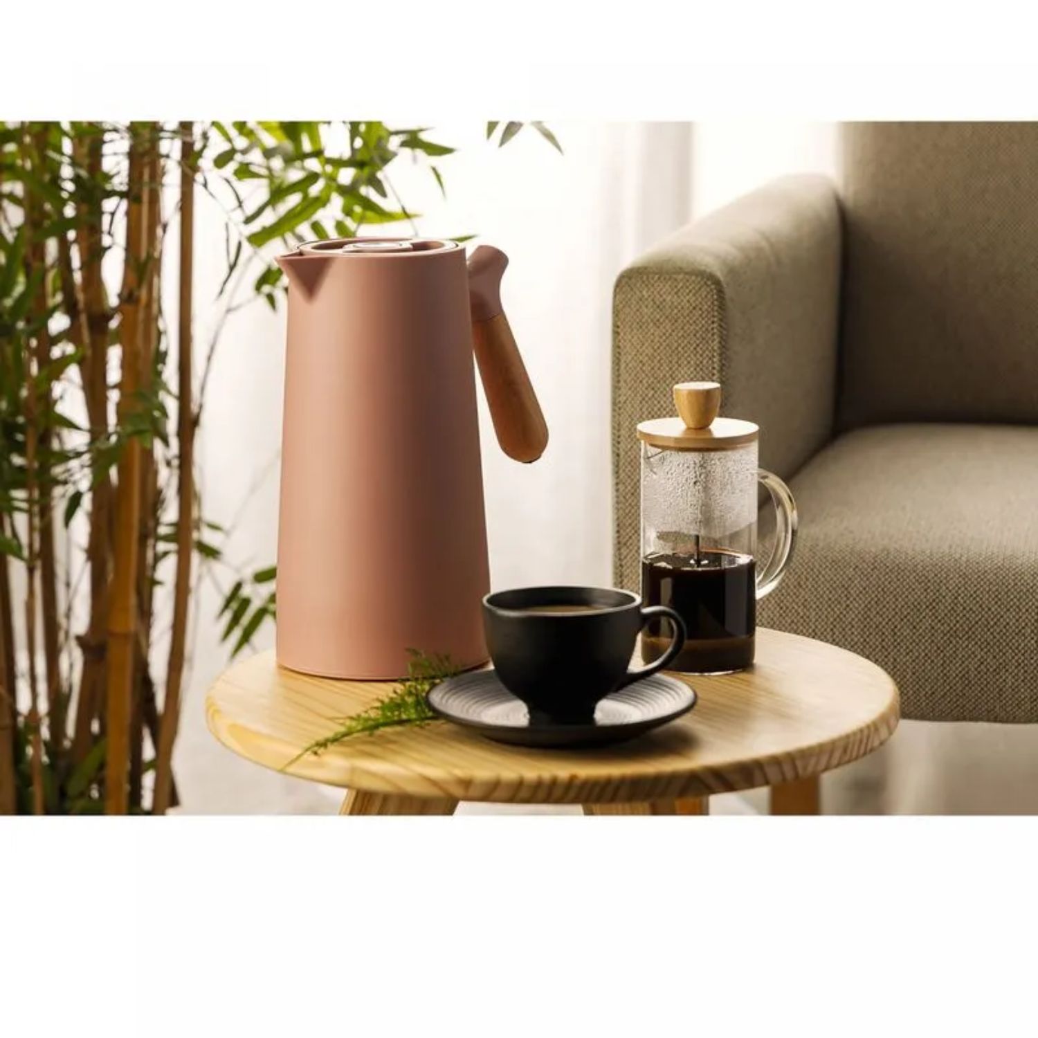 Complemente sua cozinha com esta bela Garrafa Térmica de Plástico com Cabo de Madeira e Termômetro Nórdica Nude 1L da Wolff,uma garrafa que combina sofisticação e funcionalidade para manter suas bebidas na temperatura ideal.