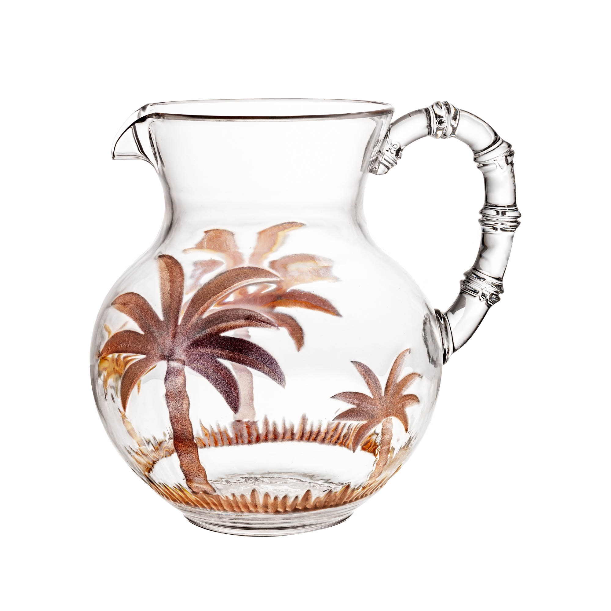 Com um design inspirado na natureza, a jarra de acrílico palm gold apresenta um padrão de folhas douradas que adiciona um toque de luxo e elegância à sua mesa.