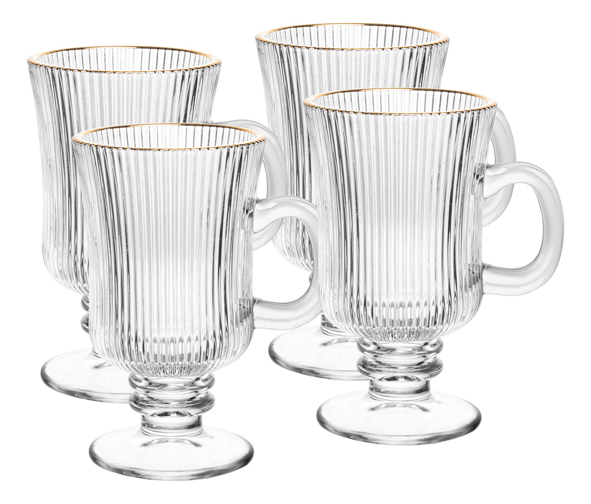 Jogo 4taças 240ml de vidro para cappuccinocom fio de ouroLinesWolff - 20678