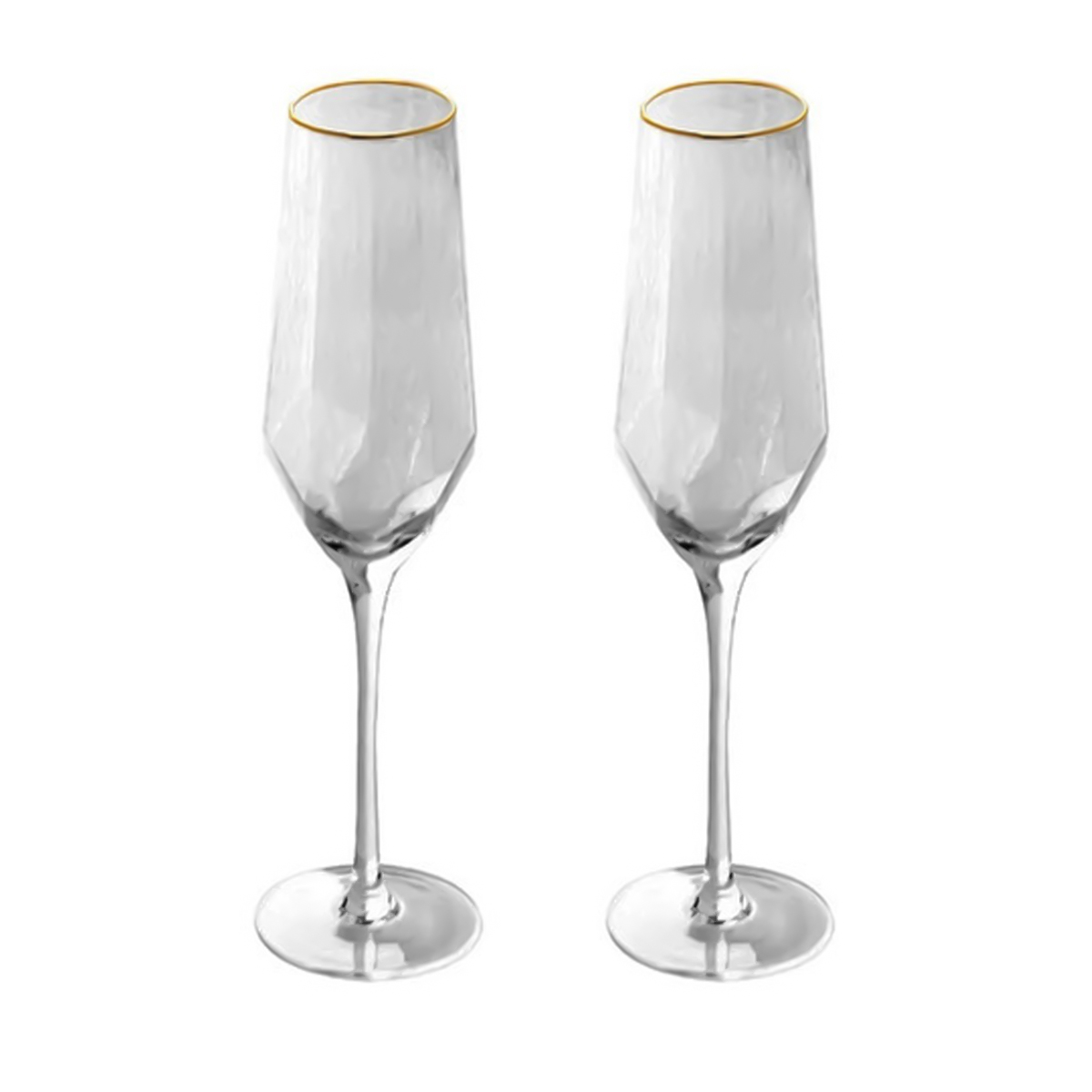 Conjunto 2 Taças de Champanhe de Cristal com Borda Dourada Taj 300ml Wolff
