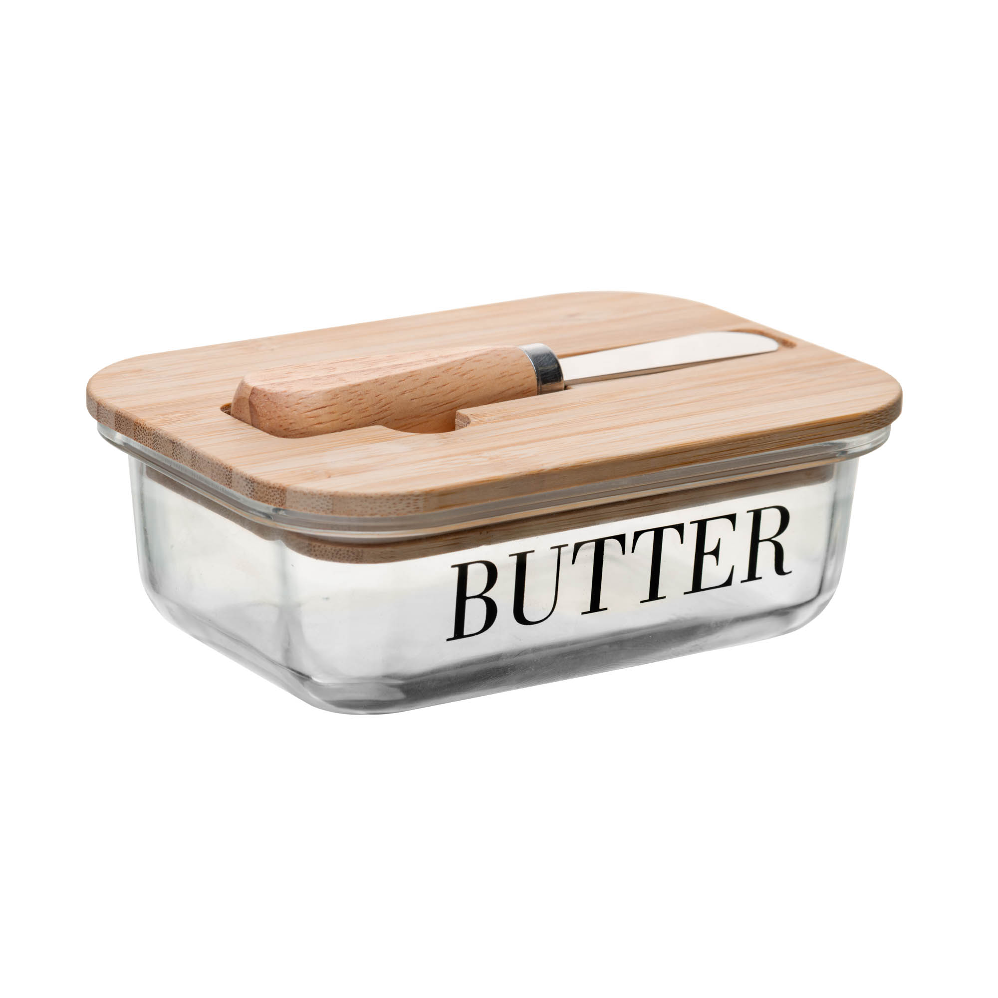 Manteigueira de Vidro com Espátula e Tampa de Bambu – Elegância e Praticidade à Mesa